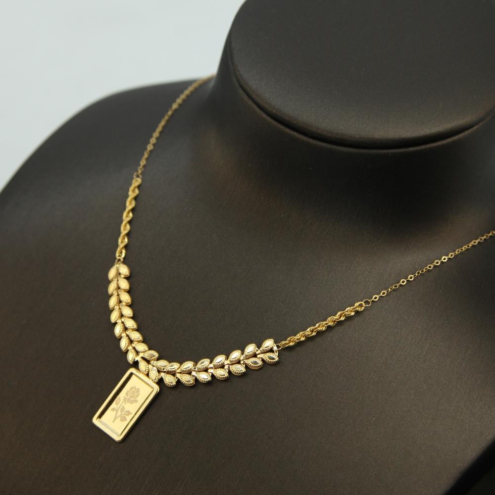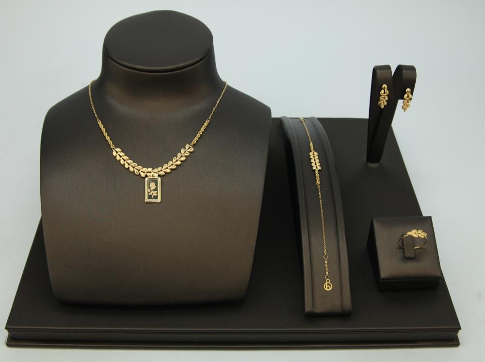 استوحي أناقتك من نعومة الطبيعة مع طقم "غصن الورد" المصنوع من ذهب عيار 21، والذي يجمع بين رمزية الوردة وجمال أوراق الغصن المتناغمة. يتميز العقد بتفاصيل ناعمة على شكل أوراق تشبه أغصان الزيتون، تتوسّط...