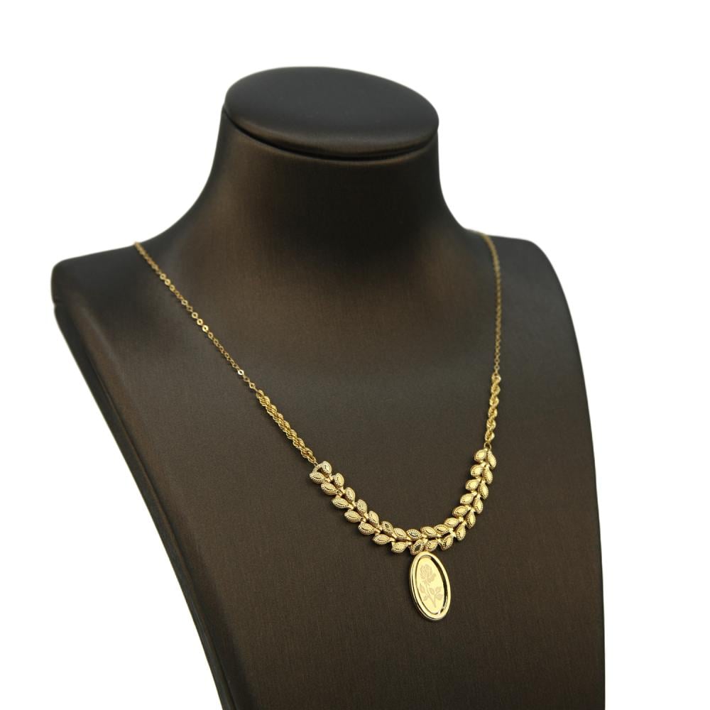 أضيفي لمسة شاعرية إلى إطلالتك مع "الوردة البيضاوية"، عقد مصنوع من ذهب عيار 21 بتصميم مستوحى من الطبيعة برؤية فنية ناعمة.