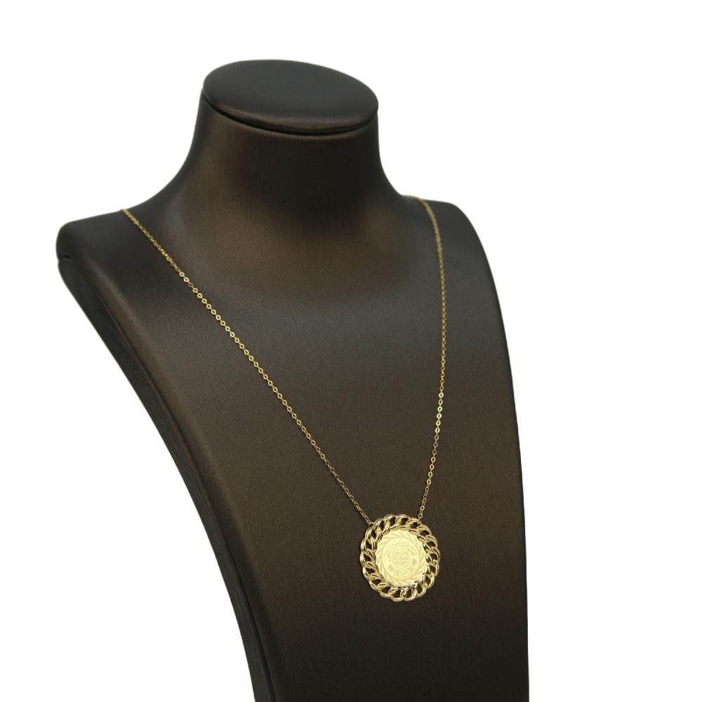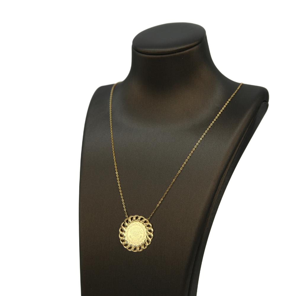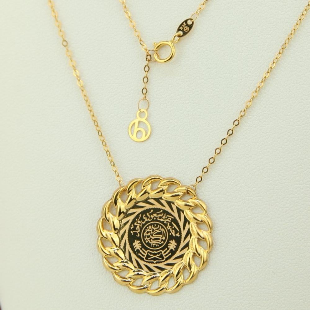 يتوسّط العقد جنيه ذهبي محفور بنقوش دقيقة مستوحاة من العملات الت...