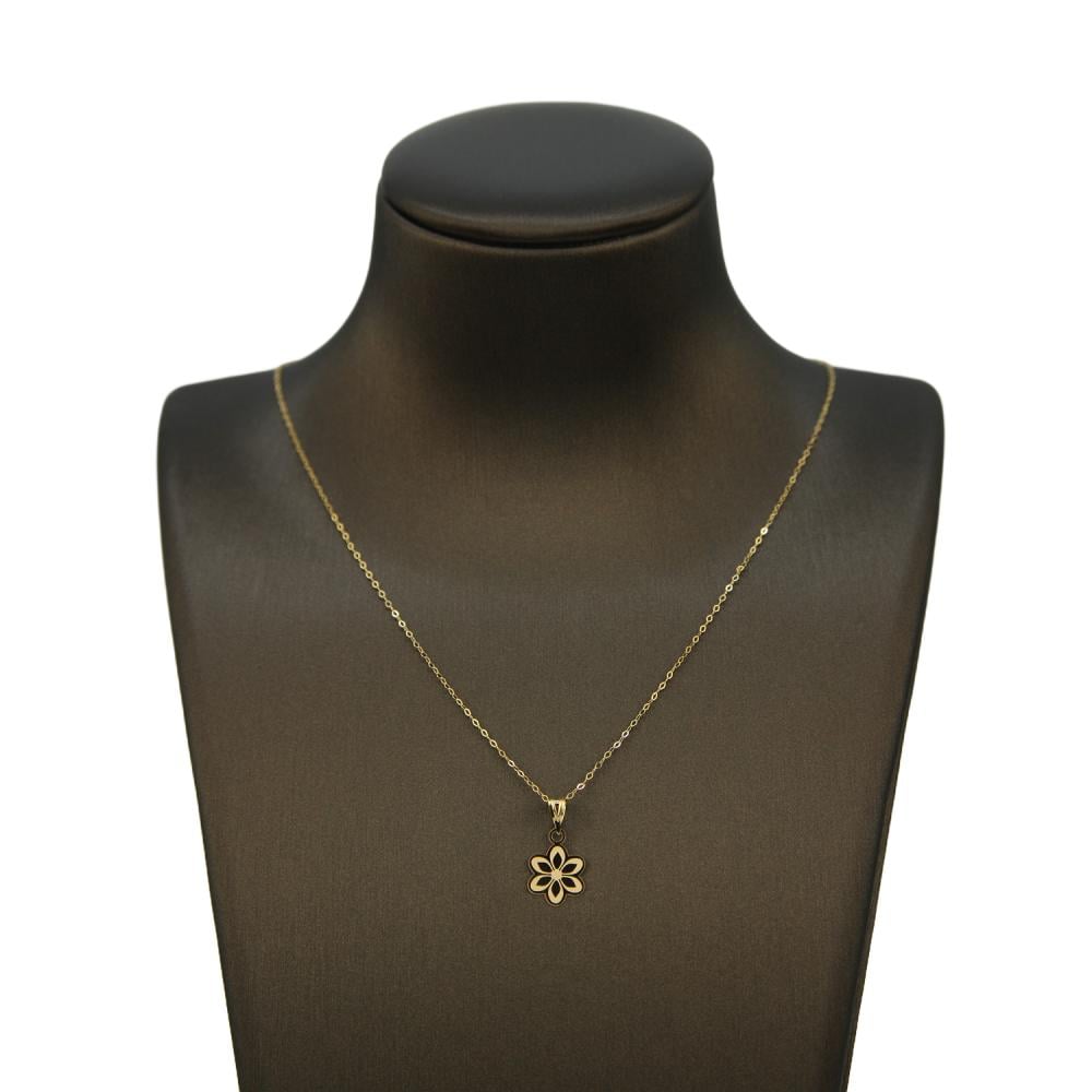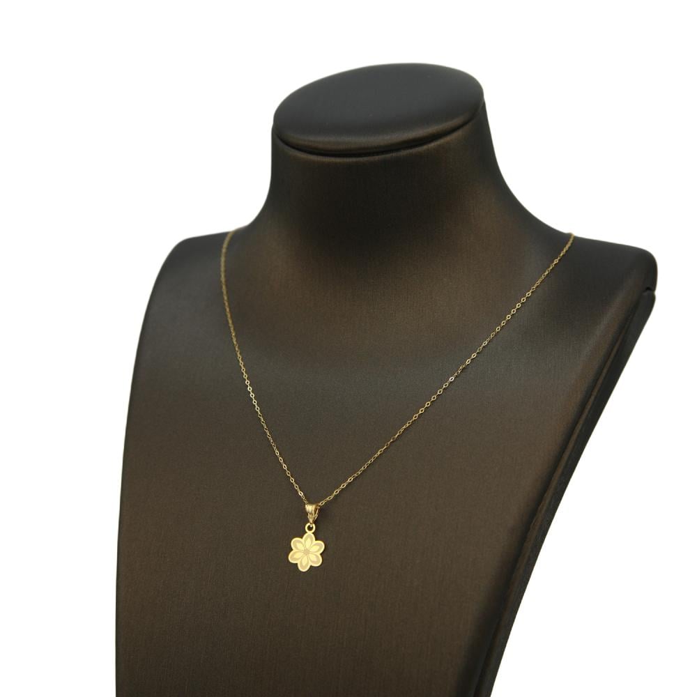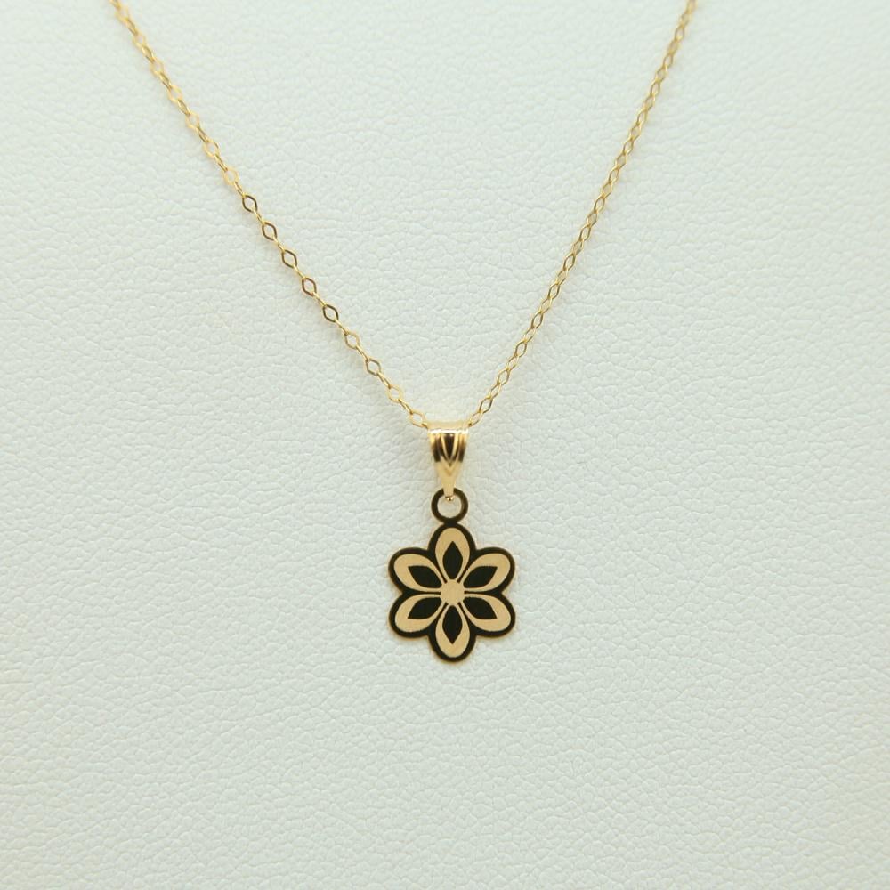 تعزّزي أنوثتك بإطلالة ناعمة مع هذه التعليقة المصممة على شكل وردة أنيقة. مصنوعة من ذهب عيار 21، وتأتي بسلسلة بطول 40 سم تكمّل مظهرك برقيّ.تصميمها البسيط والراقي يجعلها خيارًا مثاليًا للإطلالة اليومية أو كهديّة محببة.